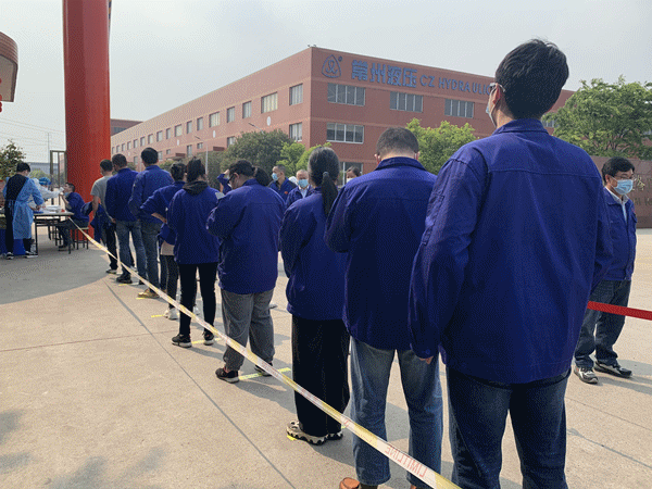 根據(jù)上級文件精神指示,4月19日下午,常州液壓成套設(shè)備廠有限公司配合開展全體員工及鄰廠單位全員核酸檢測,為安全生產(chǎn)筑牢“防護(hù)墻”。